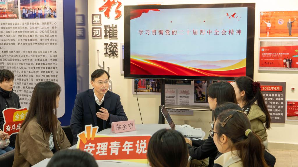 中国共产党第二十届中央委员会第四次全体会议,于2025年10月20日至23日在北京举行。为深入学习贯彻党的二十届四中全会精神,本期“安理青年说”邀请到马克思主义学院副院长郭金明担任主讲教师,引导青年学子深刻领会会议的核心要义与重大意义。10月31日晚,活动于美育展馆B305室顺利举办,现场40余名师生参加。